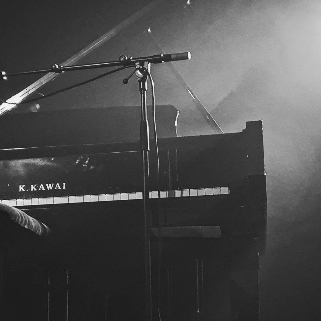 Sur scène, trois quarts dos, face à son piano, dans une semi-pénombre, elle nous enveloppait de mélodies drapées dans des captations sonores de paysages recomposés, morcelés et rapiécés comme des êtres fragiles.